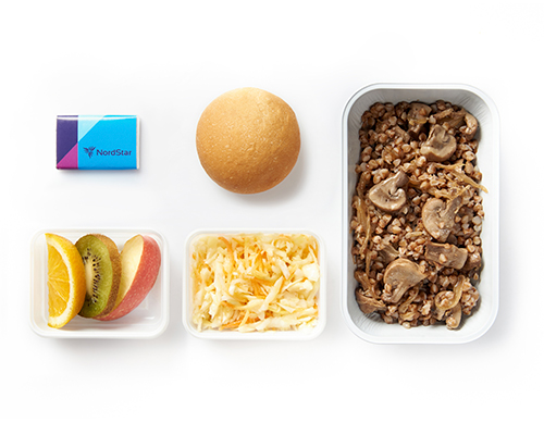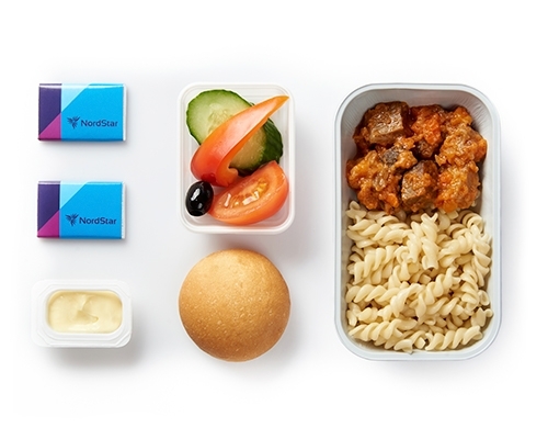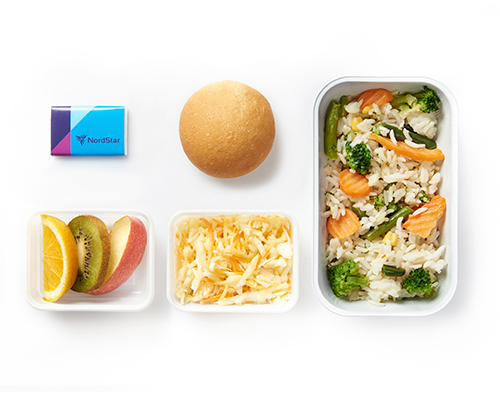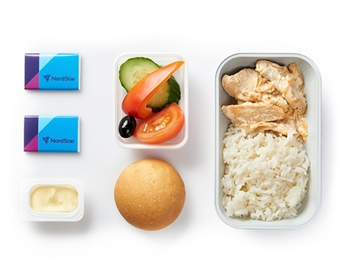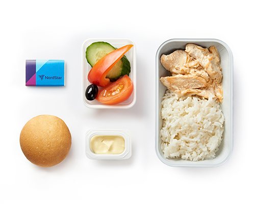 Питание сервируется на фарфоровой посуде. При обслуживании пассажиров бизнес-класса мы используем льняные салфетки, горячие салфетки (осибори), металлические и стеклянные приборы.