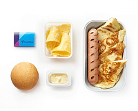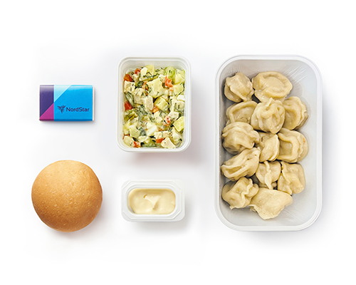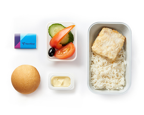 Питание сервируется на фарфоровой посуде. При обслуживании пассажиров бизнес-класса мы используем льняные салфетки, горячие салфетки (осибори), металлические и стеклянные приборы.