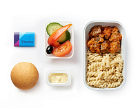Особое внимание уделяется разработке, приготовлению и сервировке питания в бизнес-классе, над которым работают лучшие шеф-повара. Учитывается все: от цветовой сочетаемости блюд до расположения блюд на подносе.